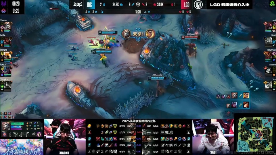 LGD虽然打进了四强,但实力跟JDG差距太大了,教练在比赛的时候,更是上演了搞笑名场面,第一局18分钟左右,LGD就已经双龙开局了,停牌龙团战,上辅蹲草先秒一个,5打4的情况下,只要稳一点,稍微拉扯一下,老干爹团战肯定是能赢的,结果教练突然发力,打团介入了语音。