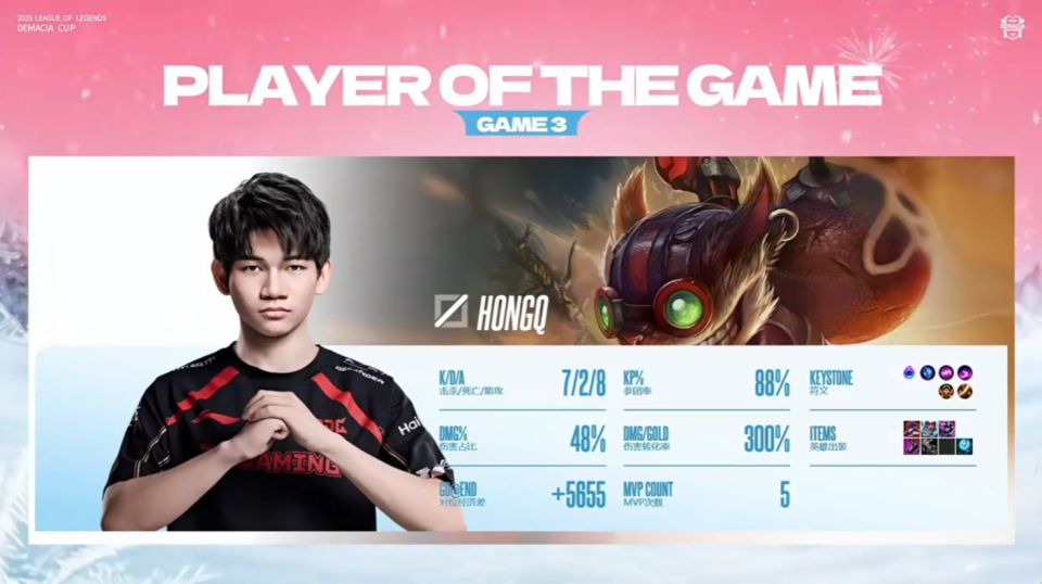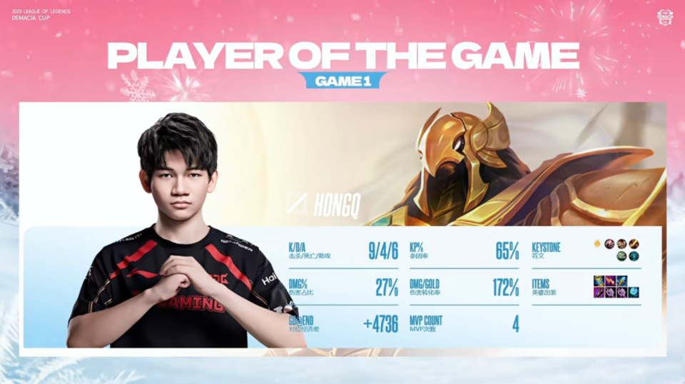 今日德杯另一场半决赛,比分也是3:0,JDG轻松战胜LGD,晋级决赛。HongQ沙皇遭遇Gank,丝血精彩反杀Tangyuan岩雀。Xiaoxu亚恒在团战中大杀四方,关键切死Shaoye女枪。JDG先下一城。Xiaoxu鳄鱼扛着防御塔秒掉了Shaoye的卡莉丝塔,JDG 2:0领先。Xiaoxu奎桑提像个战神,一个人顶在最前面,为队友创造输出空间。HongQ炸弹人伤害爆炸,JDG连赢3局晋级决赛!JDG能顺利走到决赛,中单HongQ是队内表现最好的选手,今天又拿到第一局和第三局的MVP,近6场淘汰赛一共拿到了5个MVP!HongQ是今年LCP赛区评选的年度最佳选手,年度最佳新人和年度最佳中单,可谓是又一个天才新人。但是在世界赛,HongQ的发挥不如队伍里另一个C位Doggo,而且在八强赛被BDD打爆,所以也有观众认为他只是吹出来的。不过从德杯来看,JDG买HongQ没买亏,确实有实力,而且很年轻有潜力。HongQ英雄池很全面,在德杯玩了沙皇,冰鸟和龙王,网友调侃以为Faker和Chovy来了。昨天iG晋级,赛后Wei就说觉得Gala会战胜Tangyuan,Wei果然预测对了。两人以前在RNG,去年在iG都是队友,关系自然是很好,明天要在赛场上进行友好交流。这也是Gala从iG离队后,首次对阵旧主。对于一些强队,德杯并不重要,AL和TES就是二队参赛,BLG也没上王牌左手,左手还说他打就能拿冠军。但是对于iG和JDG,这个德杯冠军挺有意义。一是因为两队都已经好几年无缘冠军,德杯冠军再小也是冠军,别拿豆包不当干粮。二是因为两队都换了大部分选手,组了新阵容,如果能以一个冠军开个好头,新赛季也会更有信心。德杯半决赛和决赛有一个亮点,就是教练可接入语音,每局游戏3次,每次15秒。根据观察,教练一般有两种风格,一种是主动型,比如LGD的1874,场上还没发生什么事时,就直接接入语音指挥。另一种是被动型,比如JDG的Zoom,先按兵不动,让选手自由发挥,如果队伍某波团打输了,再接入语音提醒一下。如果这个功能全面在LPL和世界赛实施,用好它也会影响比赛胜负。不过可惜的是,可能因为涉及到战术机密,目前还没放出来任何教练的语音内容,我们没法知道教练说了些啥。总不会是先点菜吧。明天17:00,就要进行德杯决赛,iG和JDG谁能拿到2026年的第一个冠军呢?