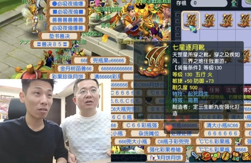 惊喜并未停止。紧接着,一双130级“伯牙绝弦”鞋子登场,敏捷+48,防御+84,市场估价轻松过万,引来弹幕一阵羡慕。