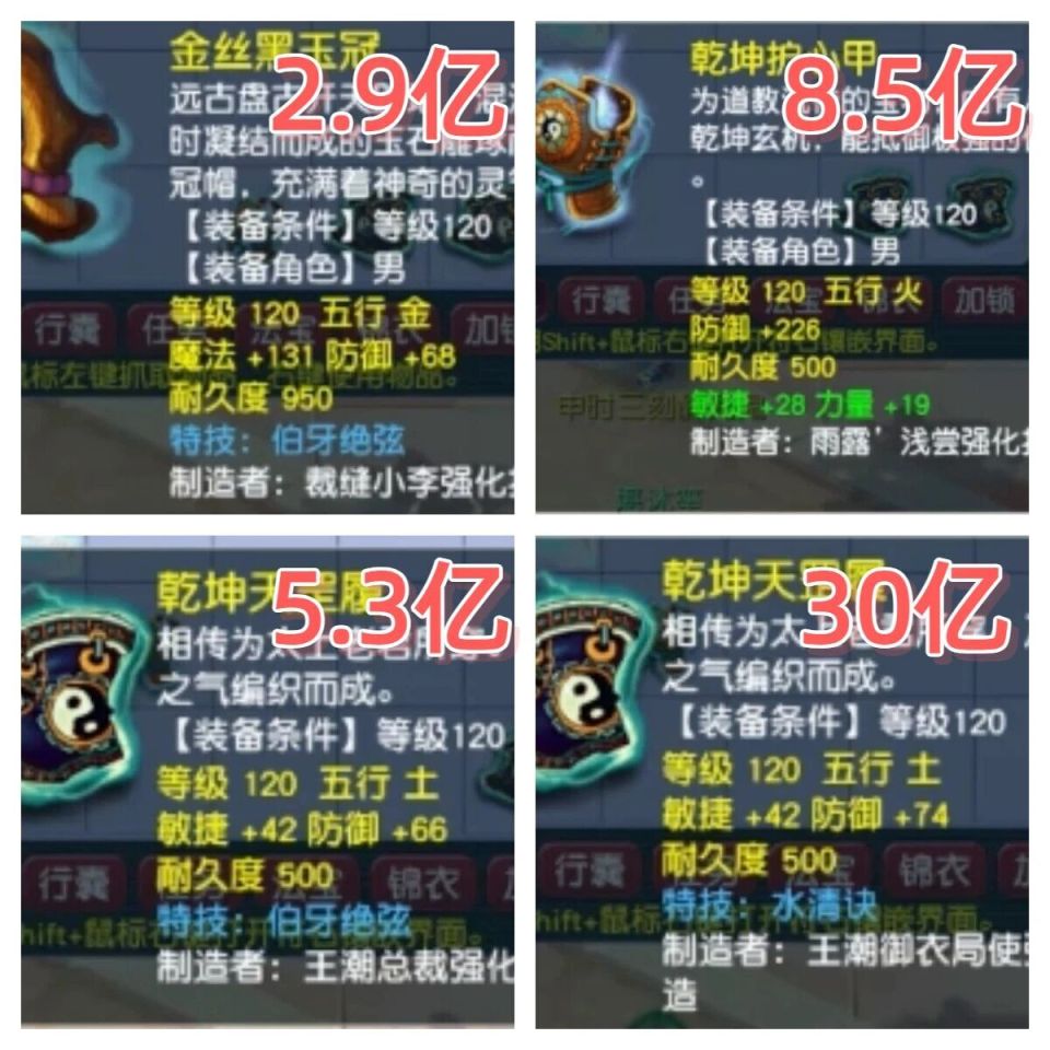 120级男头,伯牙绝弦特技,防御+68,成交2.9亿;