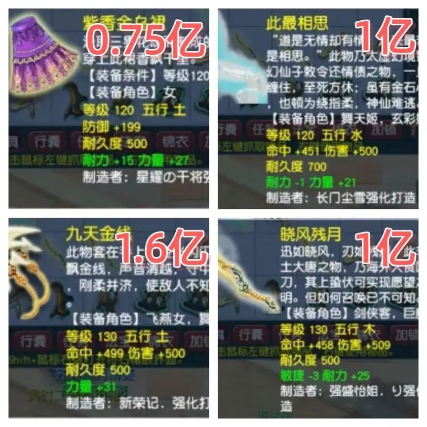 120级飘带,伤害+500、命中+451,附加力量21点,拍出1亿;