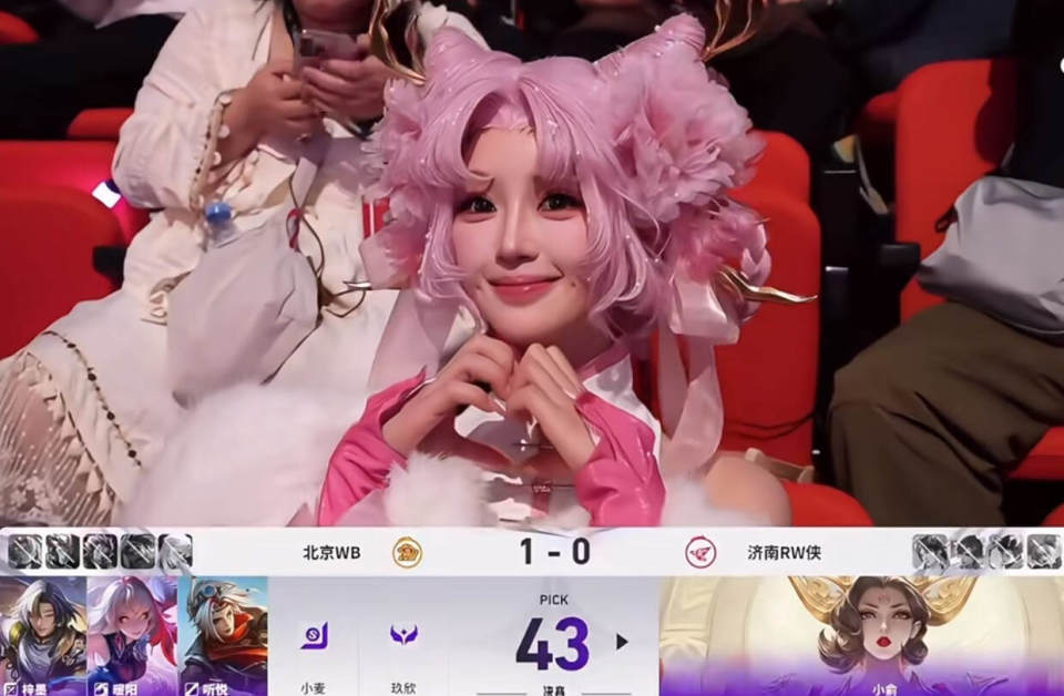 并且,在两支战队选择英雄的间隙,导播也是很贴心的切到了付慧琳的画面,她也很自然的笑起来,给观众们比心,表现的也是非常的自在的。