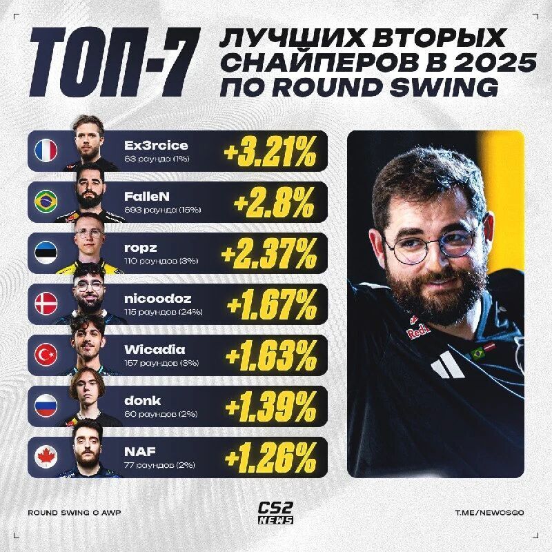 2025年副狙排名:Senzu“最坑”,FalleN最佳