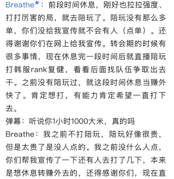 呼吸哥离开赛场,当陪玩仅坚持了一个月,果断宣布回归LPL
