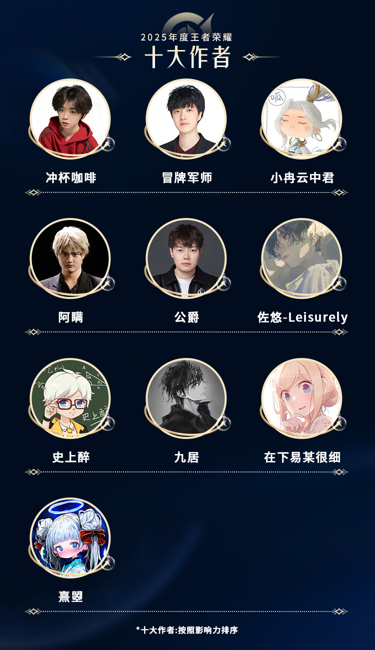 2025年度王者荣耀十大创作者