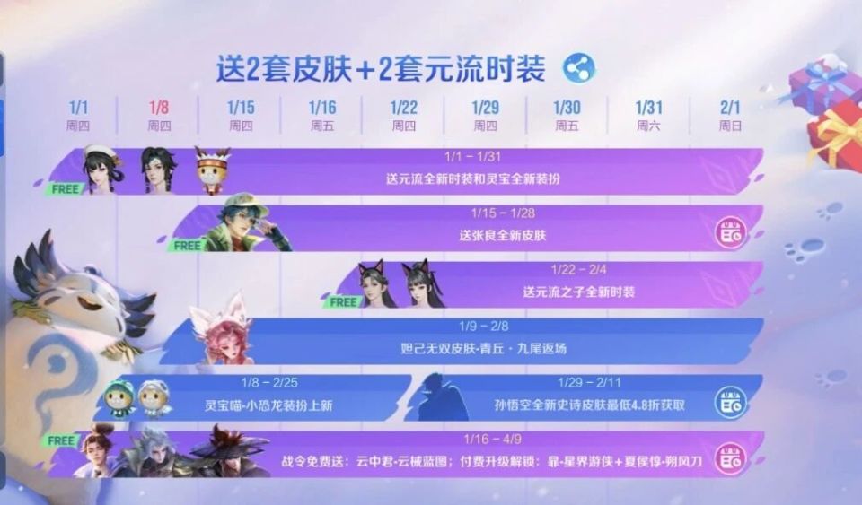 国际服和国服的重叠率越来越高了,之前也听说国际服和国服要合并,看来是有迹可循的。1月的国际服活动日历很丰富,比如有一个孙悟空的全新史诗皮肤,还有青丘九尾的返场。猴哥才出无双,所以这款全新史诗应该不会在短期内上架过的。孙悟空的无双皮肤上线,连带着返场了两款之前的无双,一款是首次返场的甄姬艾莎,另一个是瑶真我赫兹。所以下一次无双的上线,也很可能返场两款,一款毫无疑问就是公孙离离恨烟,另一款很可能就是国际服即将返场的青丘九尾啦!这次返场就是第二次返场,后面很难再返场,所以喜欢的就不要再错过啦,决定不买的话,后面也没必要再后悔了,一个皮肤而言,玩的开心最重要。