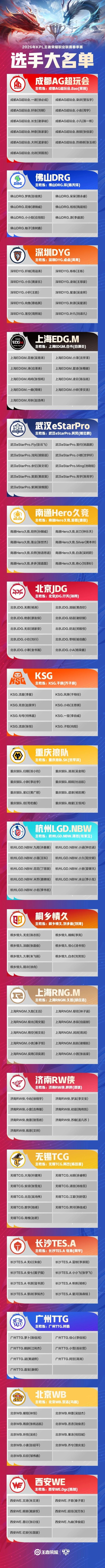 春季赛18家参赛俱乐部:成都AG超玩会、佛山DRG、深圳DYG、上海EDG.M、武汉eStarPro、南通Hero久竞、北京JDG、KSG、重庆狼队、杭州LGD.NBW、桐乡情久、上海RNG.M、济南RW侠、无锡TCG、长沙TES.A、广州TTG、北京WB、西安WE