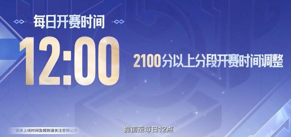 为方便玩家更加自由地参加对局,巅峰万强赛将2100分以上玩家的开赛时间提前至中午12点,玩家们将有更多的时间参与巅峰万强赛。