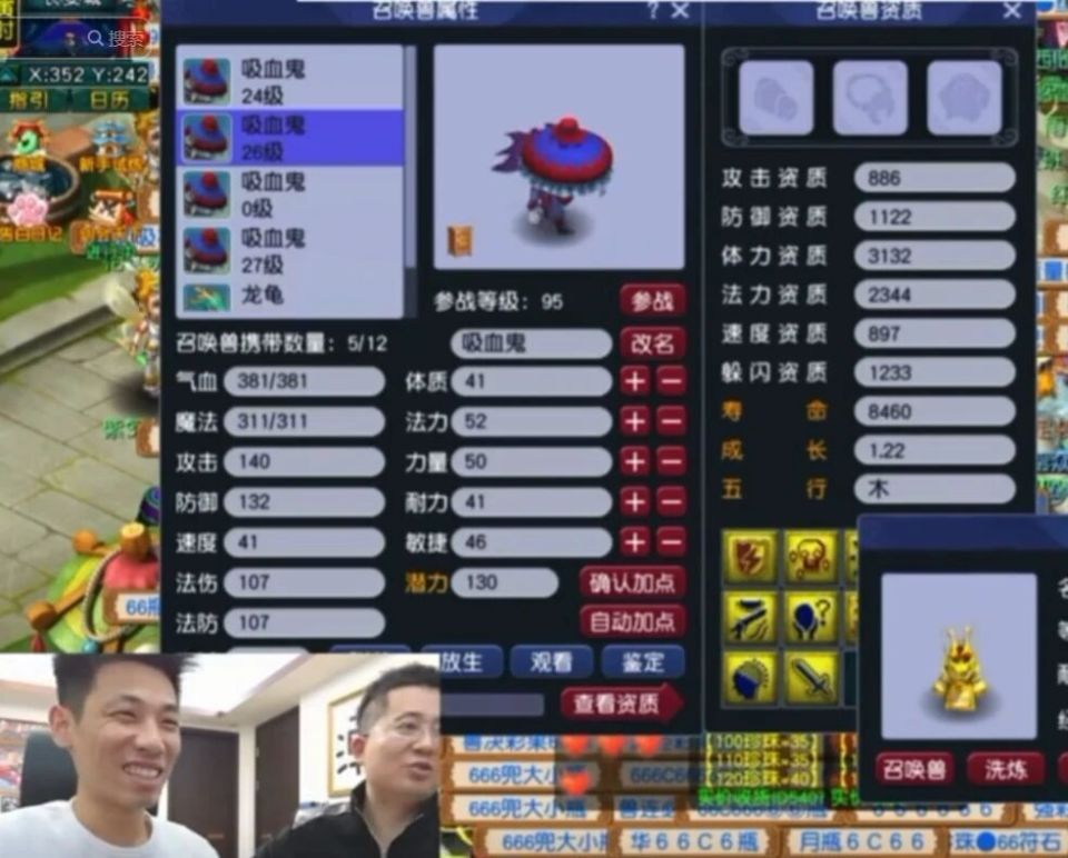 紧接着,惊喜加倍!两只8技能、同样拥有力劈华山的吸血鬼接连现身。一者资质出众但成长稍欠,另一只胚子则成长亮眼而资质平常。好在龙拳版本中,既有“炼兽真经”可补成长,又有元宵能提资质,假以时日,皆是可造之材!