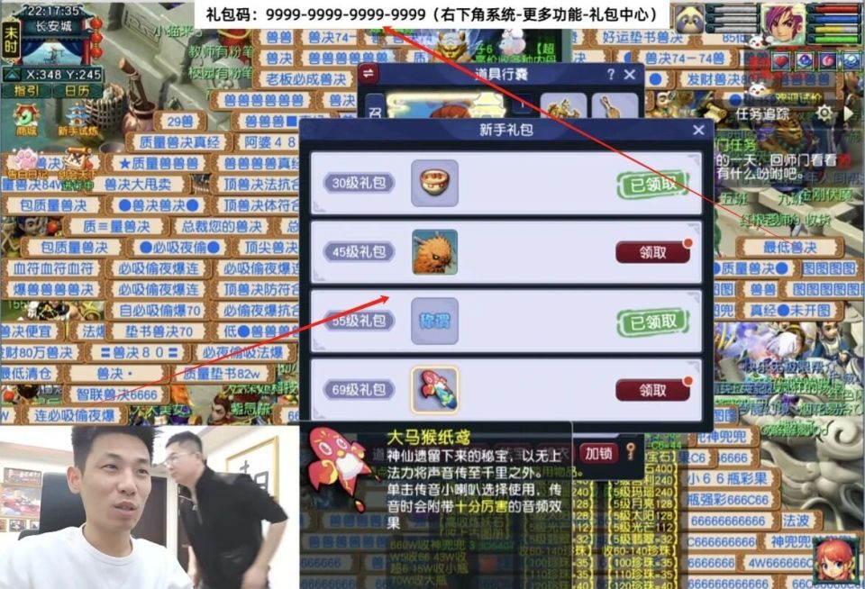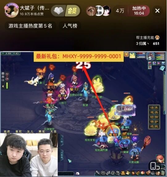 大家不禁开始猜测:如果大斌子是0001,那宝哥的会是怎样的号码?结果晚上宝哥一开播,答案揭晓——他的礼包码更加霸气,直接全是9。这大概是梦幻历史上第一个纯数字“连号”礼包码,排面十足!
