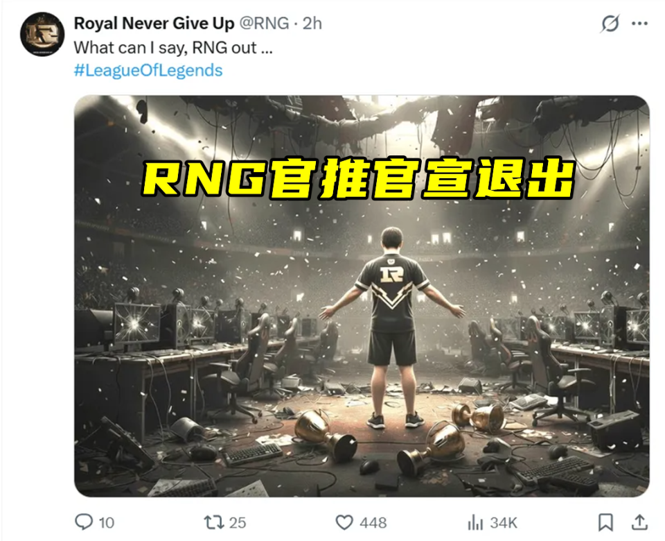 并且还配上了一张AI图片,这张图片给人第一眼的感觉就是Uzi,虽说没有指明,但还是引发了不少Uzi粉丝的反感。而且有一说一,这种官宣真就有点过于随意了。对此,LPL圈内不少相关人员都发文进行了互动,转发了RNG官推宣布退出这件事,也算是为RNG在LPL画上了最后一个句号。至于为什么官博没有消息,有知情人士爆料RNG的官博运营团队已经解散了,无人运营自然也就没人善后。虽说消息没有被实锤,但就RNG的负债情况来看,肯定是越早解散越好。
