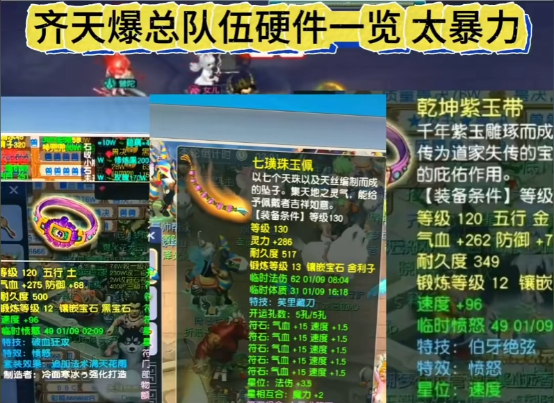 首先不得不提的,是爆总以400亿天价斩获的120级腰带——愤怒+破血狂攻双特效加持,进攻节奏把控能力直接拉满。紧接着,是团队辅助位置佩戴的“齐天大圣第一辅助腰带”:同样120级,愤怒+伯牙绝弦组合,以500亿价格收入囊中。而在项链部位,爆总选择了一条130级初灵高达208的笑里藏刀特技项链,耗费150亿。