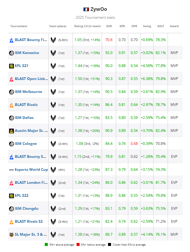 通常,这些数据足以让他无可争议地获得年度最佳选手称号,但donk在2025年的惊艳表现让这个评选更具探讨性。要理解为何ZywOo依然领先,重要的是要明白年度TOP 20选手榜单的本质:它是MVP评选逻辑的延伸。