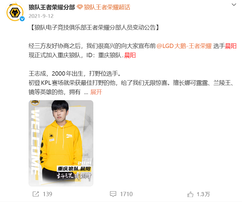 而狼队俱乐部此前也有过高价买替补的案例,21年秋季赛小胖被宝宝锁限制的情况下,他们400万买来了晨阳,并且引进了今屿。今屿从射手转到了打野,愣是没让晨阳打比赛。