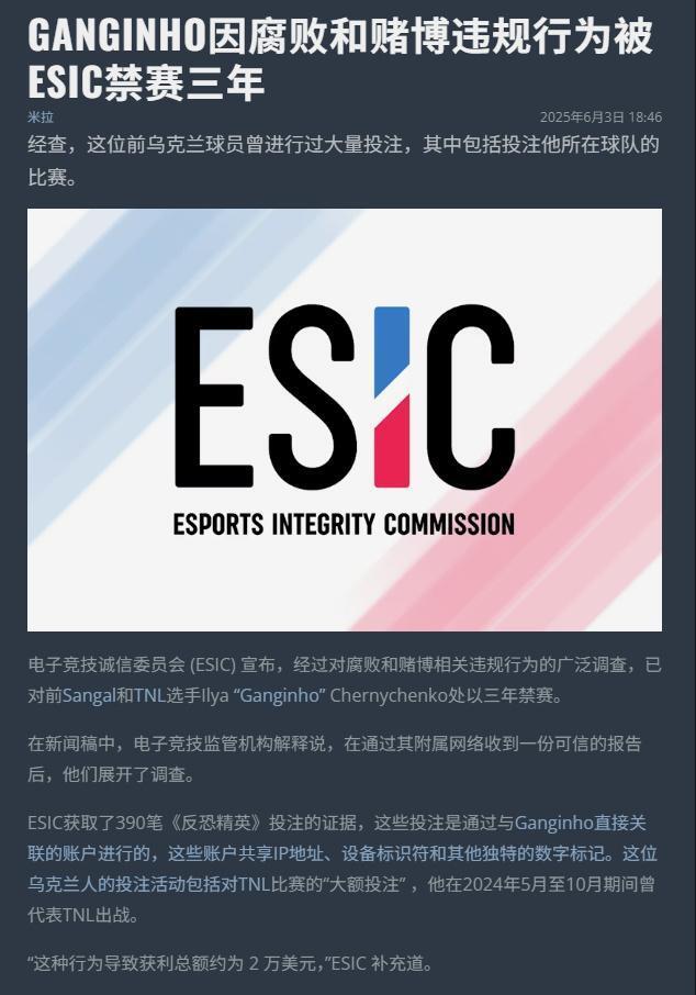 虎扑01月12日讯 昨日NiP宣布签下的乌克兰选手cairne被爆丑闻,前队友Ganginho公开指控他曾参与作弊和打假赛。Ganginho 和 cairne 曾在 TNL 战队短暂并肩作战。cairne 于 2024 年 9 月加入该队,而 Ganginho 则在次月离队。Ganginho去年三月因打假赛被 ESIC 禁赛后宣布退役。目前这些说法尚未得到证实。