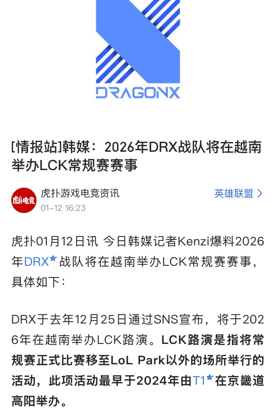 LCK常规赛在越南举办,邀请T1、GEN等强队,主场转移