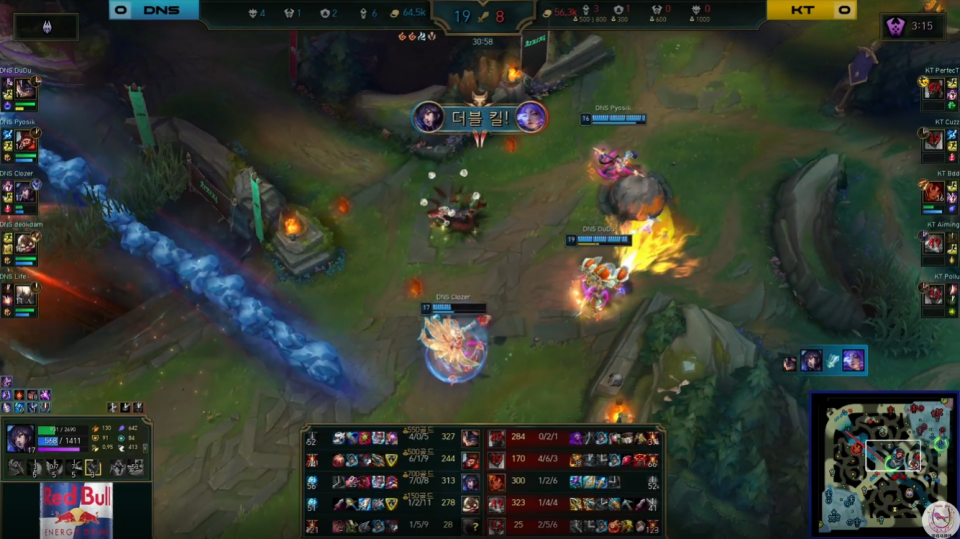 这场LCK新赛季的第一场比赛,在赛前自然是看好KT的更多。DNS中单换成了Clozer,双人组就是去年KT的deokdam和Peter,而KT自己则是重新招募了Aiming和新人辅助Pollu以及转型辅助复出的Ghost作为新下路组合。原以为KT在BDD为首的上中野不变的情况下,应该会比DNS表现更好,结果没想到上中野反而是被打穿最厉害的位置。