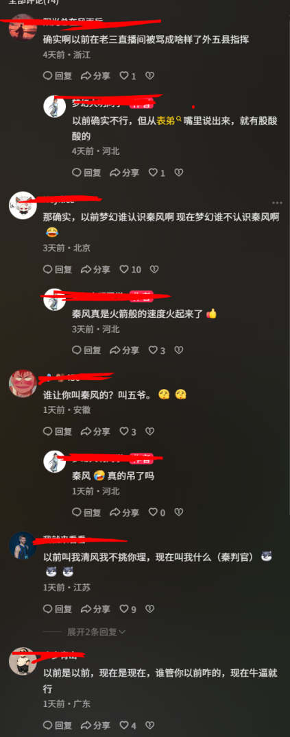这番话竟意外引得不少粉丝附和。有人回忆道,秦风当年在外五县做指挥时,甚至在老三直播间里挨过骂,那时确实没什么人知道他。但今时不同往日,一切仿佛都调转了方向。如今的秦风,背靠旭旭宝宝这棵“参天大树”,事业风生水起。有粉丝半开玩笑地总结:“以前你叫他‘清风’,他可能不计较;现在若不尊称一声‘五爷’,他恐怕都懒得搭理你喽!”