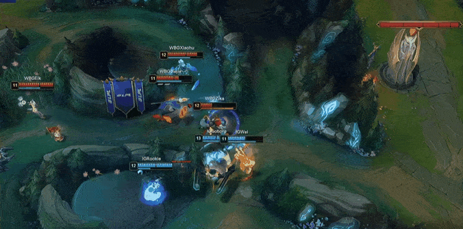 12分钟:双方河道爆发团战,IG集中火力击杀对方野辅打出零换二