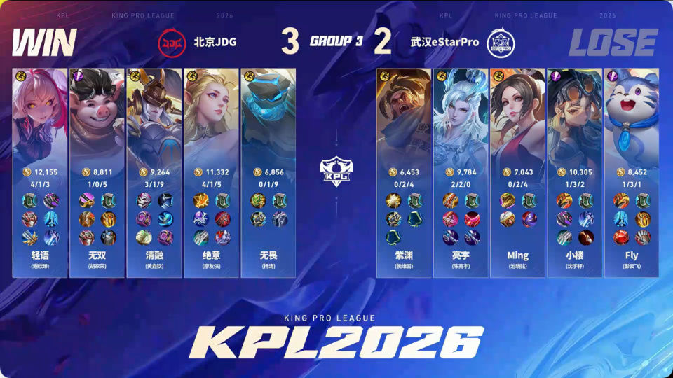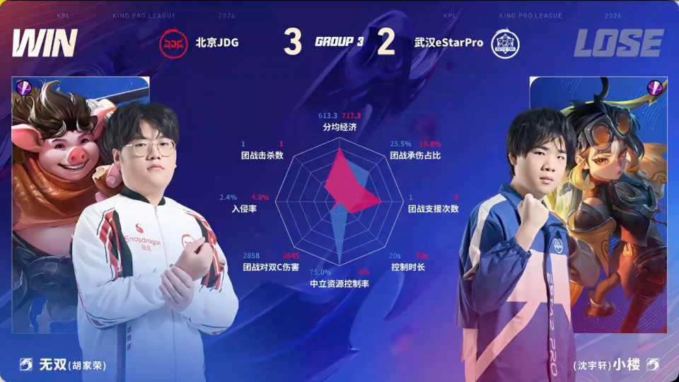 由于两队辅助不断给机会,这就导致这场比赛看起来其实是有点割裂的,其他几名选手不断开团带节奏,反倒是本来应该带节奏的辅助在不断给机会,但最终,JDG拿下了比赛的胜利。