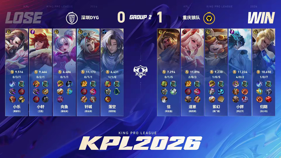 在后续的两场比赛中,DYG老选手钎城持续发力,孙尚香+李元芳都给到了狼队巨大的压力,就这样,这场属于两队的春季赛首秀,以DYG3:1狼队为结尾。