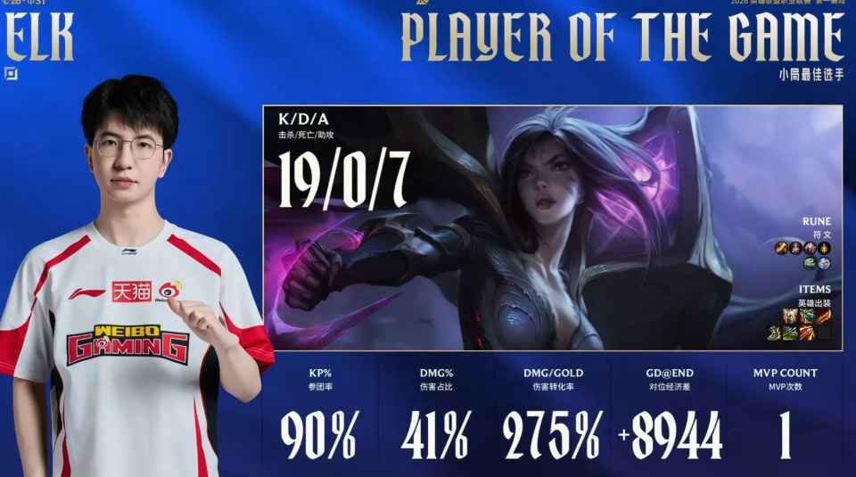 相信绝大多数的玩家对于ig战队还是比较熟悉的,作为lpl赛区曾经的顶级强队,这几年里他们进行了很多的人员重组。这个赛季的转会期,Ig战队失去了核心的上单选手Theshy,引入了多名新选手,之后整体的状态和成绩波动的非常严重。虽然在德杯的比赛中拿到了冠军,但很多的玩家依旧不看好他们。官方将IG战队和wbg战队的比赛安排在了揭幕战。最终,wbg战队让一追二成功击败了IG战队,elk卡莎19杀刷新了AD选手的击杀纪录。