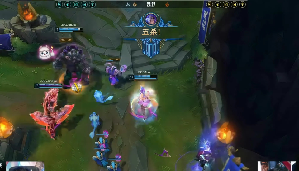 相比于第一局的激烈对抗,第二场比赛打的就比较的简单了,jdg战队在下路拥有绝对优势的情况下,二比零轻松碾压了tes战队,甚至AD选手gala还在首日的比赛中拿到了新赛季的第一个五杀,成为了当之无愧的五杀王,真的有一点当年AD uzi的味道了,只要队友给他输出空间,他就能够给队友一个获胜的团战。有一点期待接下来的blg战队了,能不能够让玩家们眼前一亮呢?今年的世界赛真的就靠这几支队伍了。
