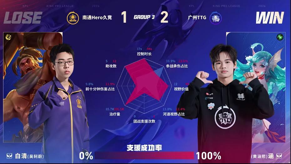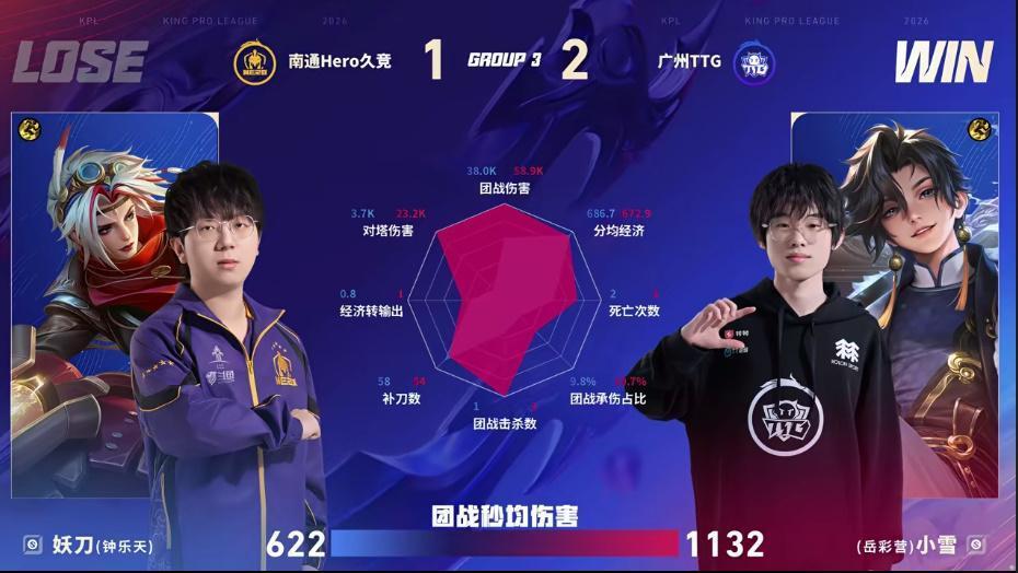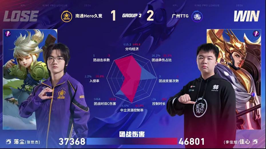 虎扑01月15日讯 TTG/Hero第三局数据图:小雪孙权几乎全包围妖刀戈娅