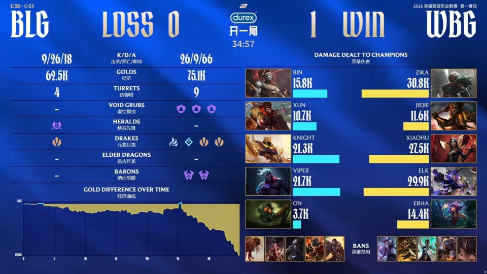BLG2-1有惊无险击败WBG,拿下首胜!小虎蛇女疯狂失误