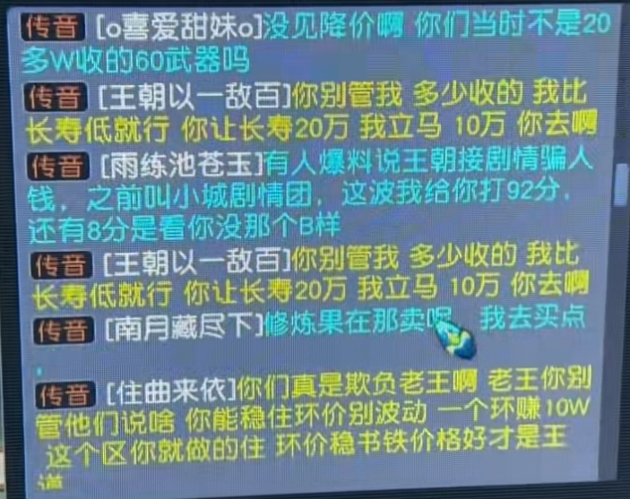 然而明眼人早已看穿其中蹊跷——这群人分明是在蓄意制造恐慌,诱导玩家误以为王朝团队恶意压价,从而引发抛售潮。他们好趁机低位接盘,大肆抄底。更狡猾的是,这一切的黑锅,都被悄悄甩给了“王朝”,让人误以为是他们在破坏市场秩序。
