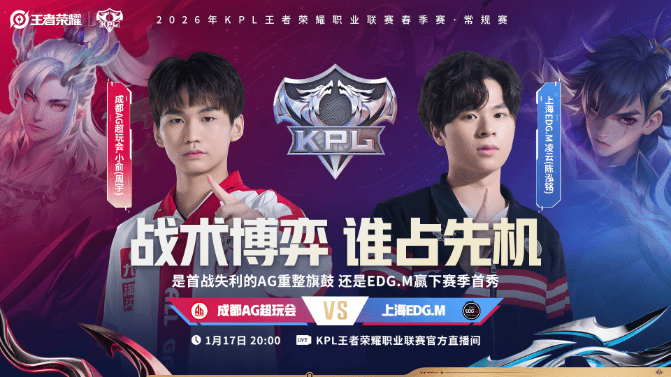 是上场被让二追三的成都AG超玩会 吸取教训,重振旗鼓?还是上海EDGM王者荣耀分部 春季赛首秀便收下开门红呢?