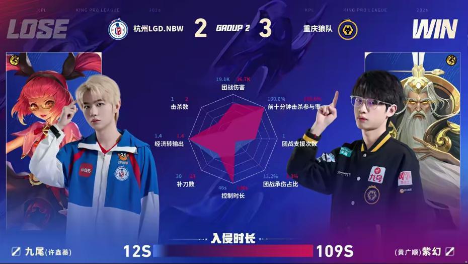 虎扑01月16日讯 狼队/LGD第五局数据图:皖皖夏侯惇多项数据拉满且对位领先