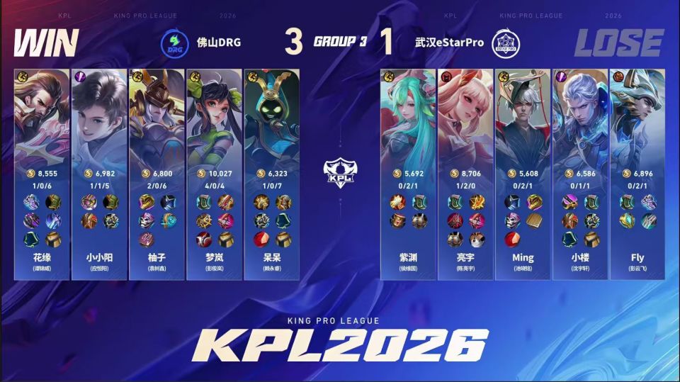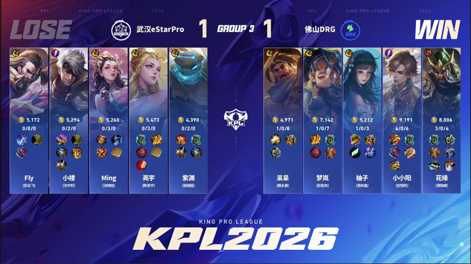 DRG3-1战胜eStar,拿到春季赛首胜。小小阳这场比赛的表现比上一场好一些,但依然没有达到大家的预期,赛后也有些自责。Estar这边fly打得真还行,中射的表现有点差劲。
