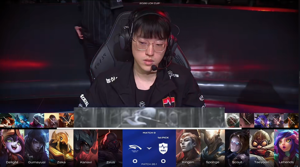 第一局比赛,HLE蓝色方,禁用:兰博、杰斯、韦鲁斯、格温、女枪,选用:Zeus塞恩、Kanavi剑魔、Zeka沙皇、Gumayusi厄斐琉斯、Delight璐璐;NS红色方,禁用:安蓓萨、石头人、芸阿娜、赵信、皇子,选用:Kingen亚恒、Sponge潘森、Scout发条、Taeyoon飞机、Lehends妮蔻