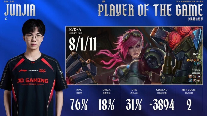 本局MVP给到屡次开团的Junjia!