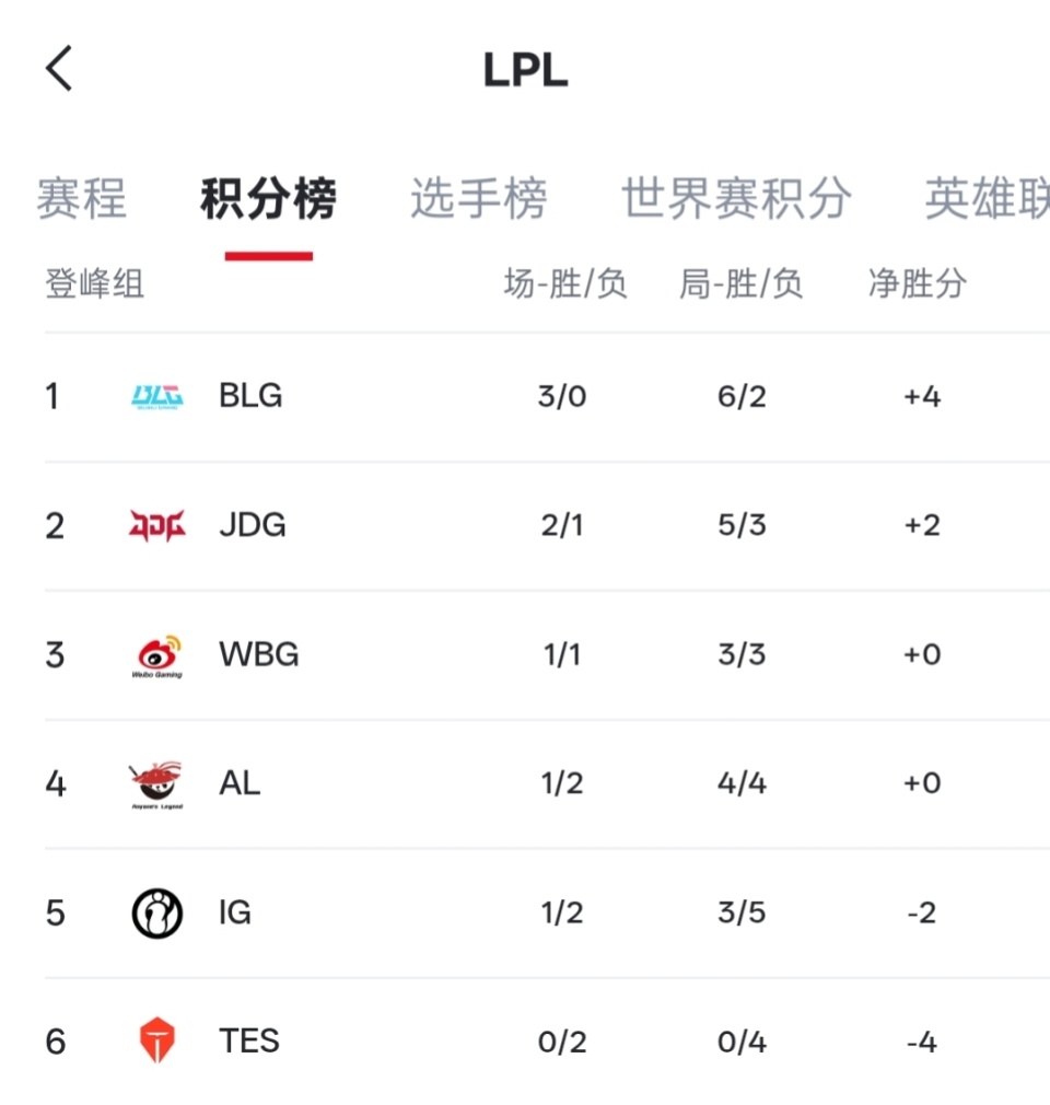 LPL战队排名变化:BLG三场全胜占据榜首,TES两连败排名末尾