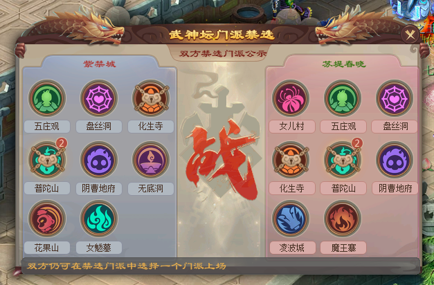 紫禁城(对战方):花果、无底、盘丝、地府、化生;