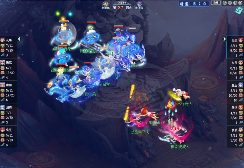苏堤春晓(观战方):化生、力女儿、魔王、盘丝、凌波。