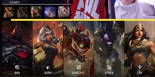 BLG选用:Bin塞恩;Xun奇亚娜;Knight炸弹人;Viper希维尔;ON牛头