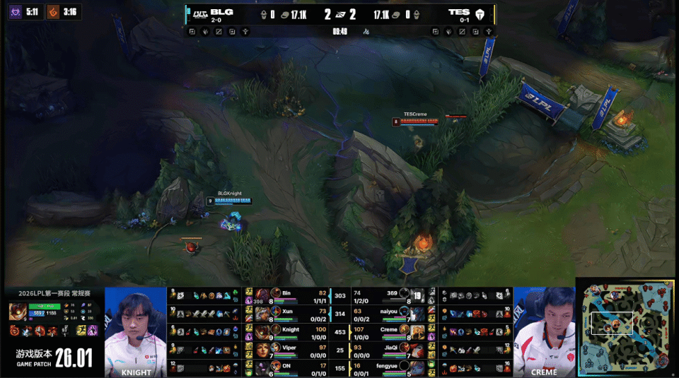 虎扑01月18日讯 GAME2:BLG蓝色方;TES红色方