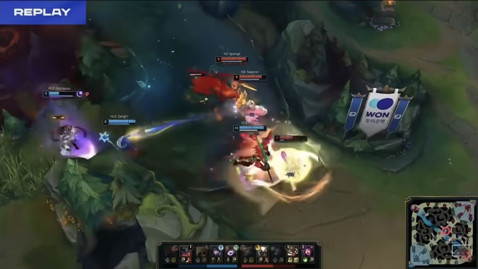 比赛进行到12分钟,HLE已经领先2K经济了,Kanavi的剑魔3-0开局,只要正常打的话,HLE是输不了的,但看片后续团战发狂了,13分钟下路河道爆发团战,Kanavi开大一打3,给Scout送了个大头,后续先锋团,Kanavi再次发狂,又冲上去1打3,结果这波又阵亡了,先锋也被NS拿下。