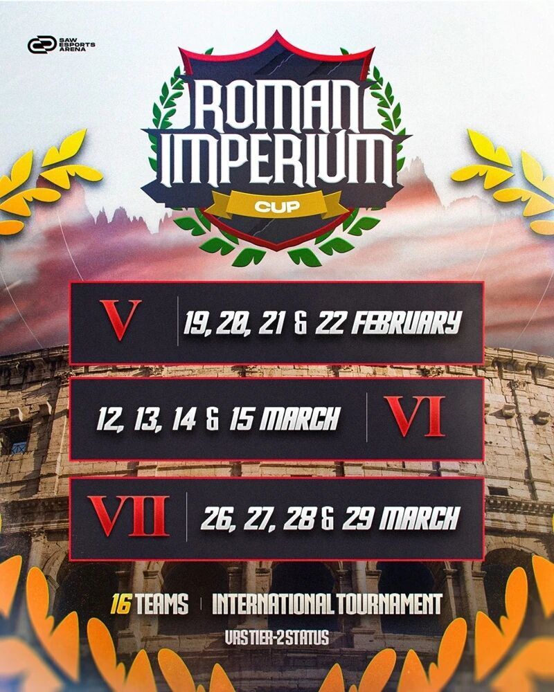 该赛事将于2月19日至22日在葡萄牙盖亚新城的SAW电竞馆举行。为了争夺宝贵的VRS积分,本次罗马帝国之声第五季吸引了包括100 Thieves在内的众多知名战队报名参赛。该赛事共有16支队伍参加,其中包括The Huns、Ninjas in Pyjamas、Gentle Mates和BESTIA。