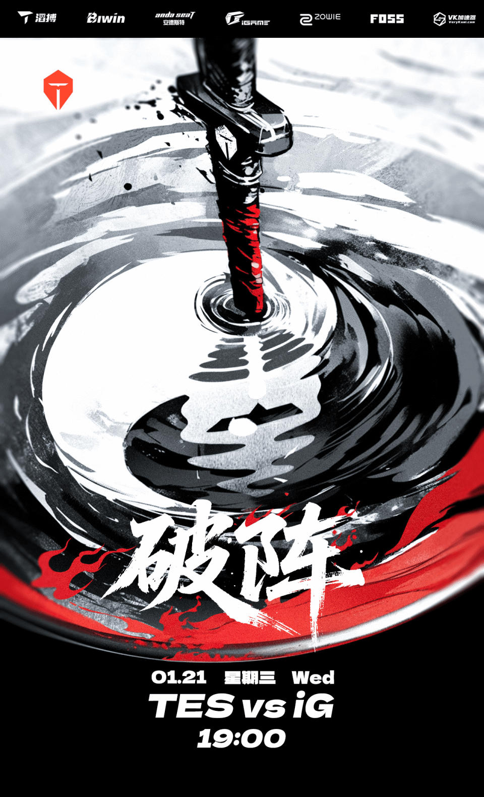虎扑01月21日讯 IG对战TES的比赛将于今日约19:00进行,赛前双方发布海报预热: