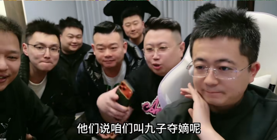 人气汇聚,弹幕骤沸。不知是谁先带起节奏,一句“你们这是九子夺嫡吗?”,瞬间点燃了整个直播间的气氛。众人一数,果然正好九人。话音未落,高必已手持一件“黄袍”跃至镜头前,高声道:“斌哥,时候到了吧!”不由分说,便将那象征性的黄袍披在了大斌子身上。