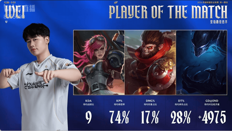 虎扑01月21日讯 何惧前路雨潇潇!Wei拿到IG对阵TES比赛的全场MVP