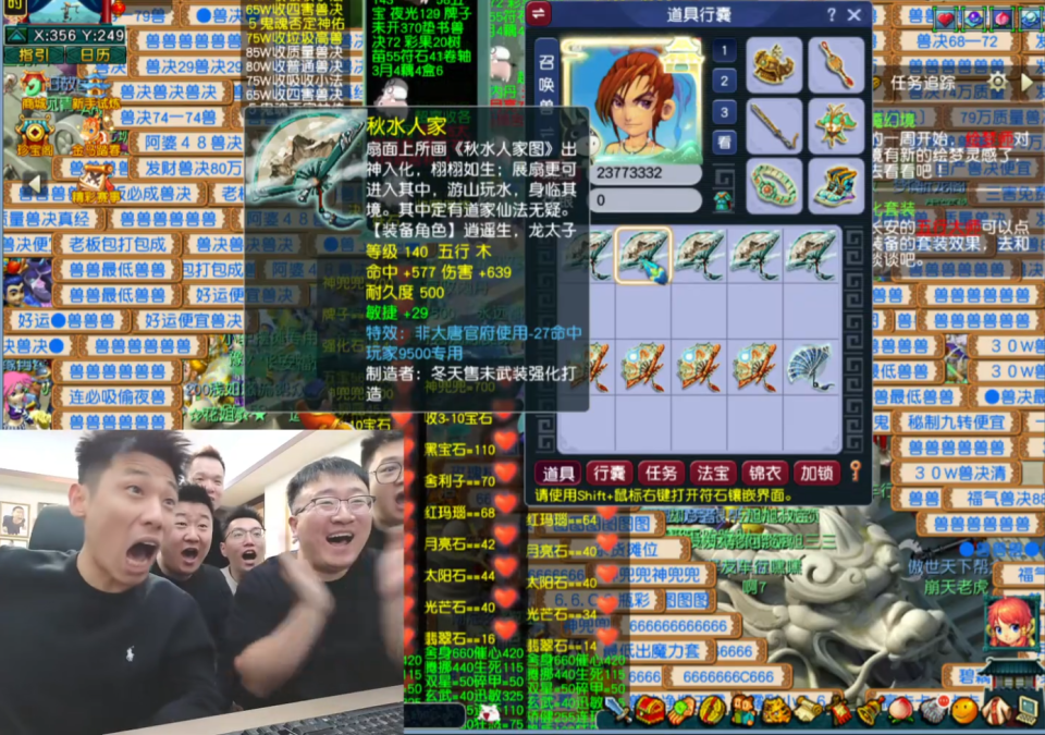 农历新年将至, 坐拥上亿资产的旭旭宝宝在大本营“广饶”举办年会,力邀旗下多位梦幻人气主播出席,畅玩服知名指挥“秦风”也在其中。为增加气氛,宝哥直接安排一场盛大的直播,并准备近千件5孔未鉴定装备,让多位主播试试手气。接下来,就让我们来看看哪位主播的手气最旺。