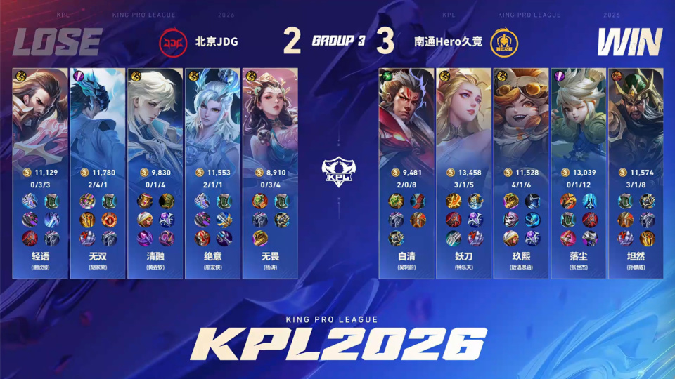 清融在这个赛道没有对手。Hero3-2战胜JDG,坦然面对老队友拿到了胜利,白清面对无畏也证明了自己的实力。而落尘虽然状态有波动,但整体上还是比无双好太多了。