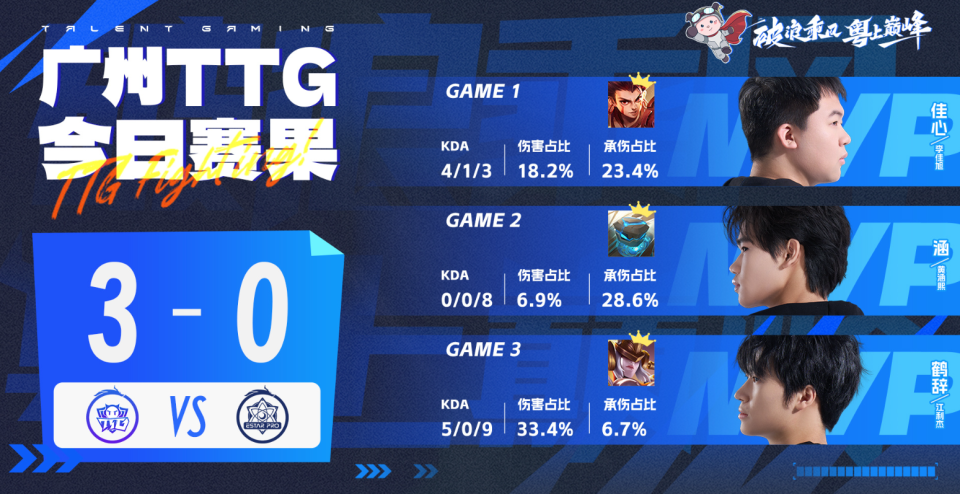 是我眼拙了。赛季初我以为TTG和eStar会一起进入B组,现在TTG3-0横扫eStar,开赛至今三连胜。鹤辞的表现非常亮眼,三局没死过。而小白熊做客解说席,佳心疑似被控制大脑,也是很有节目。