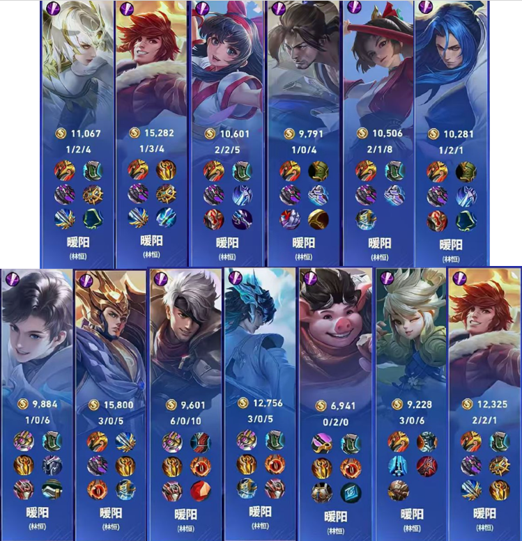 暖阳在本赛季的13小局比赛里,用了12个不同的英雄。WB3-1战胜TCG,暖阳又展现了自己的英雄海。挑杯新科冠军打K甲冠军还是没什么压力,打着打着就赢了。