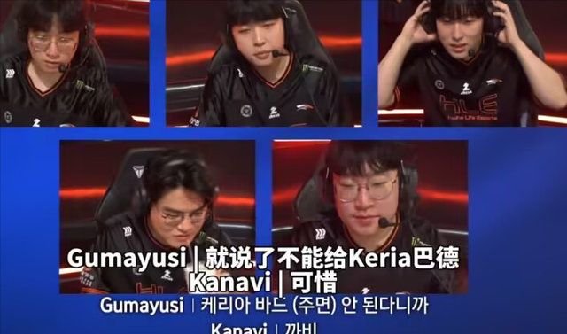 在这段官方视频当中,Gumayusi除了感叹自己状态下滑之外,还在HLE比赛语音当中吐槽HLE教练BP存在严重问题。事情起因是,HLE跟T1的焦点之战当中,Gumayusi在BP期间建议红米ban掉T1辅助小K的辅助巴德,但是HLE教练红米却没有听取Gumayusi的建议,反而放给T1中单发条、打野梦魇以及辅助巴德的完美阵容。
